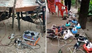 আম্ফানের তাণ্ডবে বিদ্যুতহীন যশোর: ব্যাটারি চার্জ দিতে জেনারেটর দোকানে দোকানে ভিড়।